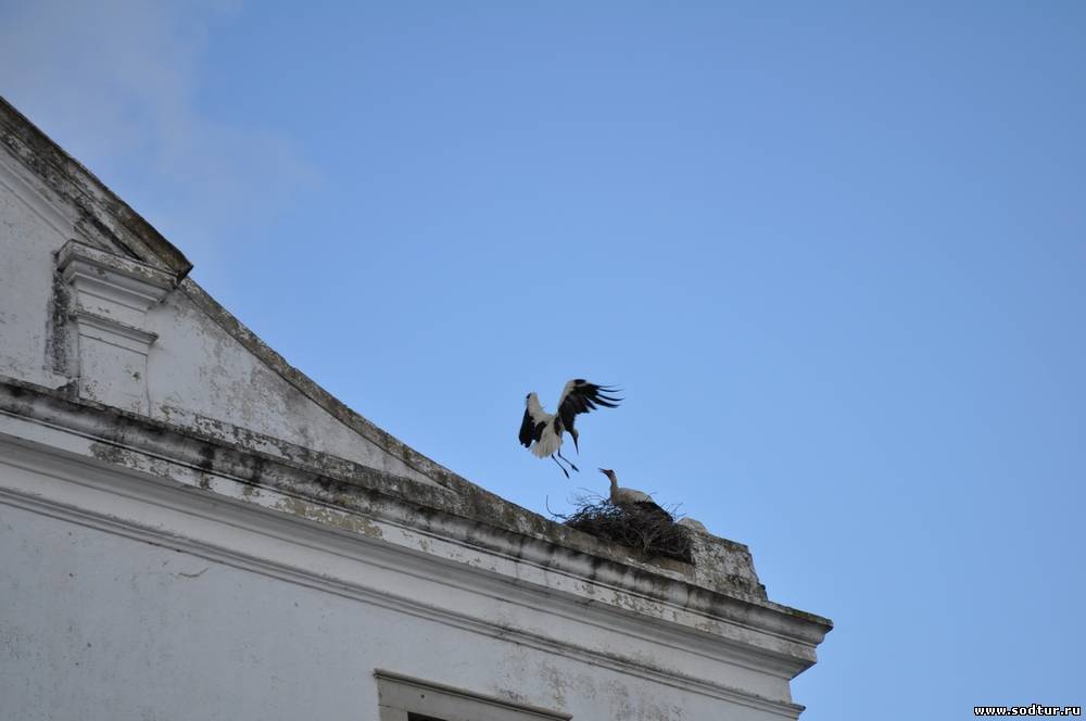 | Утро 27 мая, пятница, едем в Лиссабон. По навигатору 345 км., на протяжении всей дороги до Португалии вдоль дороги сотни гнезд аистов, помимо спонтанно возникших люди делают (если у нас скворечники, то здесь «аистятники») - это столб с прикрепленной наверху большой шиной и не по одному на каждом частном участке. Сама дорога - это одно большое удовольствие (мне как сидящему рядом с водителем особенно, Игорь свои комменты оставит…) Едем, опять поля маков, горы, реки, природа, птицы разнообразные, эвкалиптовые рощи, несколько раз останавливались, ну не могли мимо такой красоты проехать - замки и деревушки прямо на вершине гор, воздух изумительный. Граница с Португалией - просто синий знак и заколоченное здание (видимо был пост когда-то).